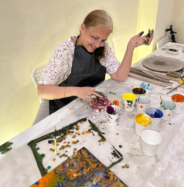 Teams craft simple alphabets and symbols, opening intuitive expression and inner calm.